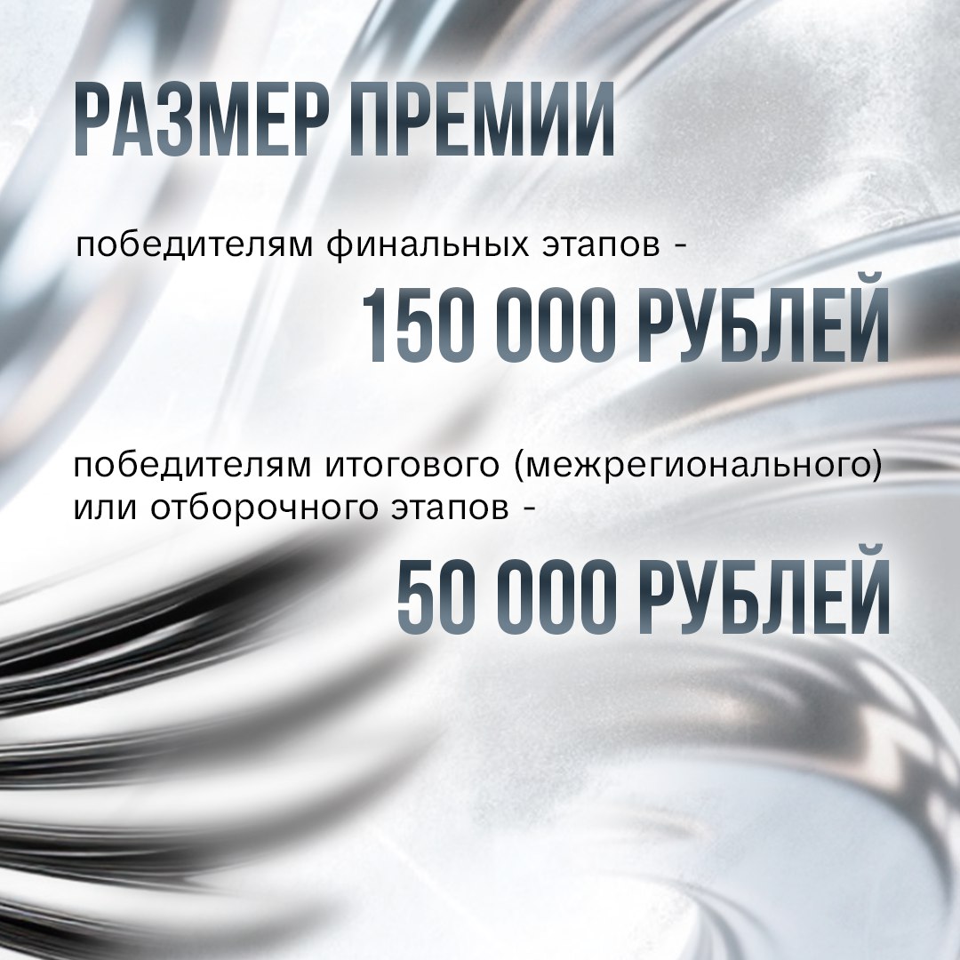 Размер премии победителям финальных этапов (Национального чемпионата) составит 150 000 рублей, победителям итогового (межрегионального) или отборочного этапов 50 000 рублей.