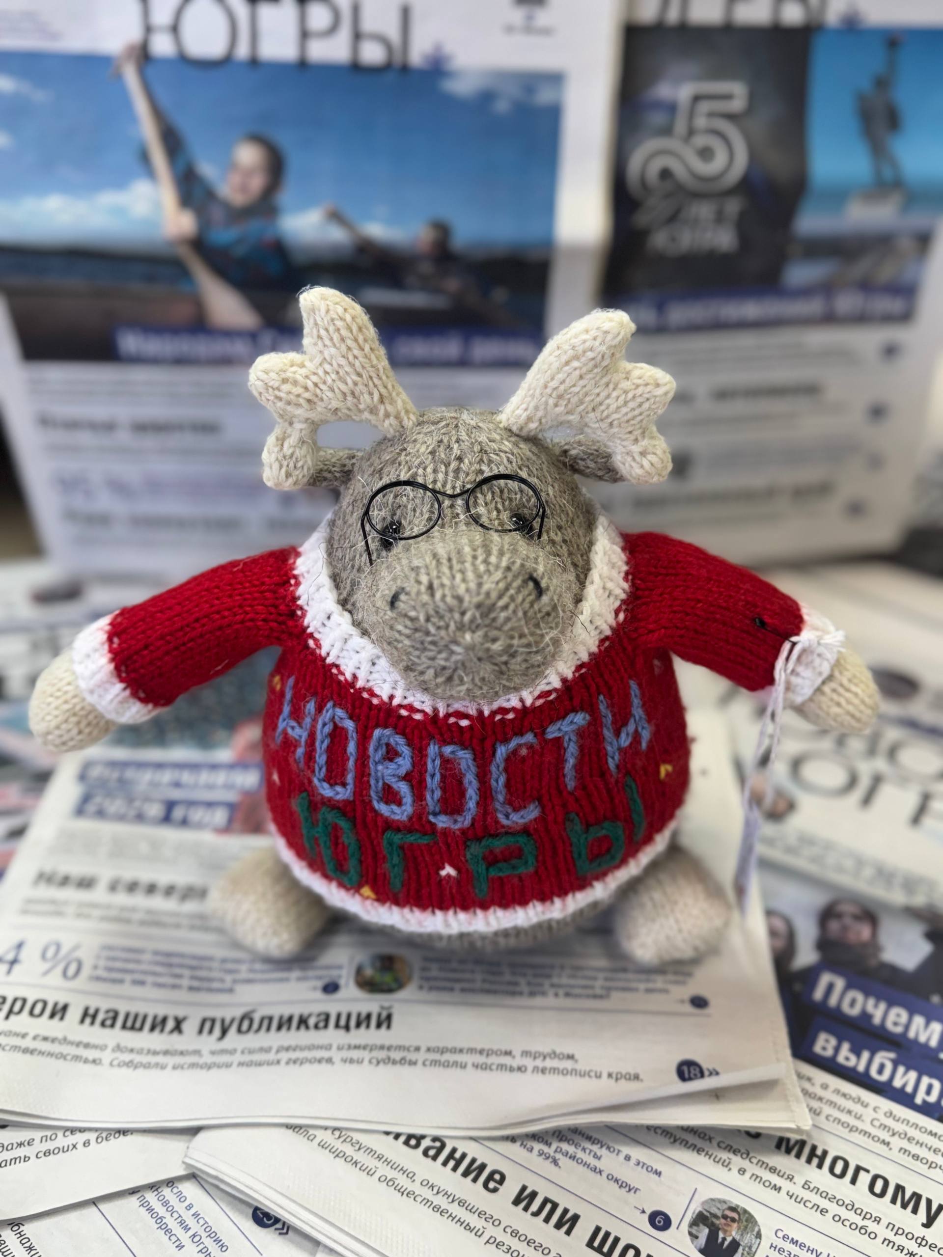 В уютном свитере с надписью «Новости Югры», в умных очках и с характером настоящего северянина. Его с любовью связала рукодельница из Ханты-Мансийска Алёна Рыбак — и теперь он ищет своё имя.