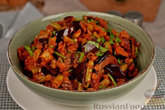 - Чечевица с баклажанами и стручковой фасолью