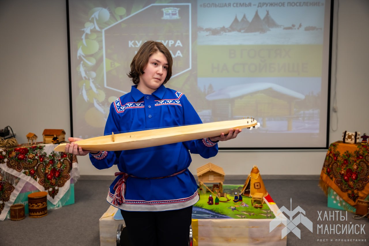 Юные горожане узнали больше о культуре, устройстве жизни коренных северных народов, выучили приветствия ханты и манси, слова, описывающие их традиционный быт. Особенно ребят заинтересовали народные инструменты — воспитанник ДЭКОЦ Санжар Нуркасымов сыграл для них на санквылтапе, варгане, нарсьюхе и бубне.