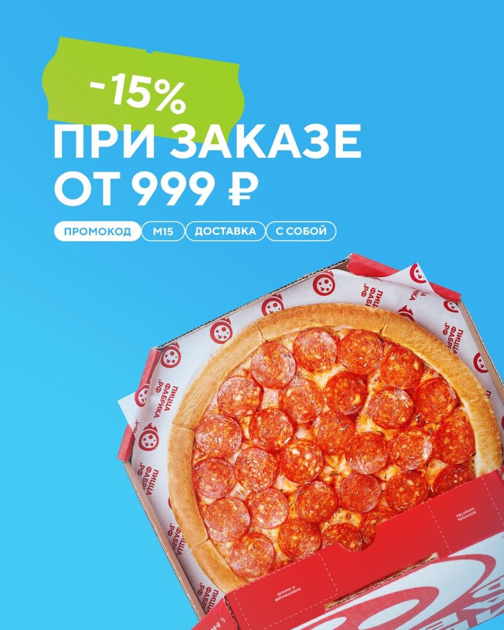 В ПиццаФабрике скидка 15% на заказ от 999 рублей!