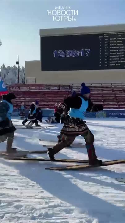 На «Лыжне России» дали старт этнозабегу. Вместо классических лыж — исконные «подволоки» (камусные лыжи).