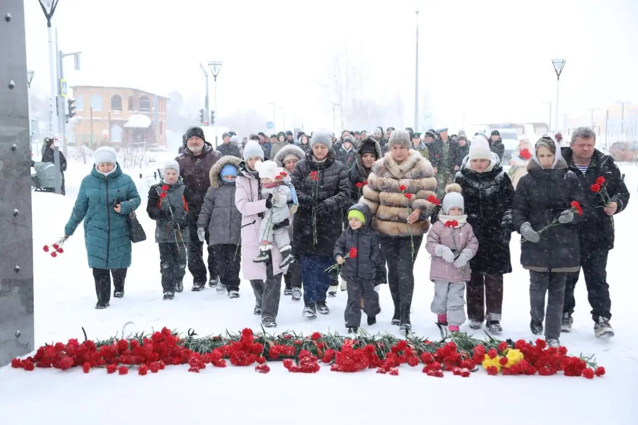 Члены семей погибших солдат, участники боевых действий, представители ветеранских и общественных организаций, администрации, Думы города возложили цветы к мемориалу «Воинам-интернационалистам» на Комсомольском бульваре.