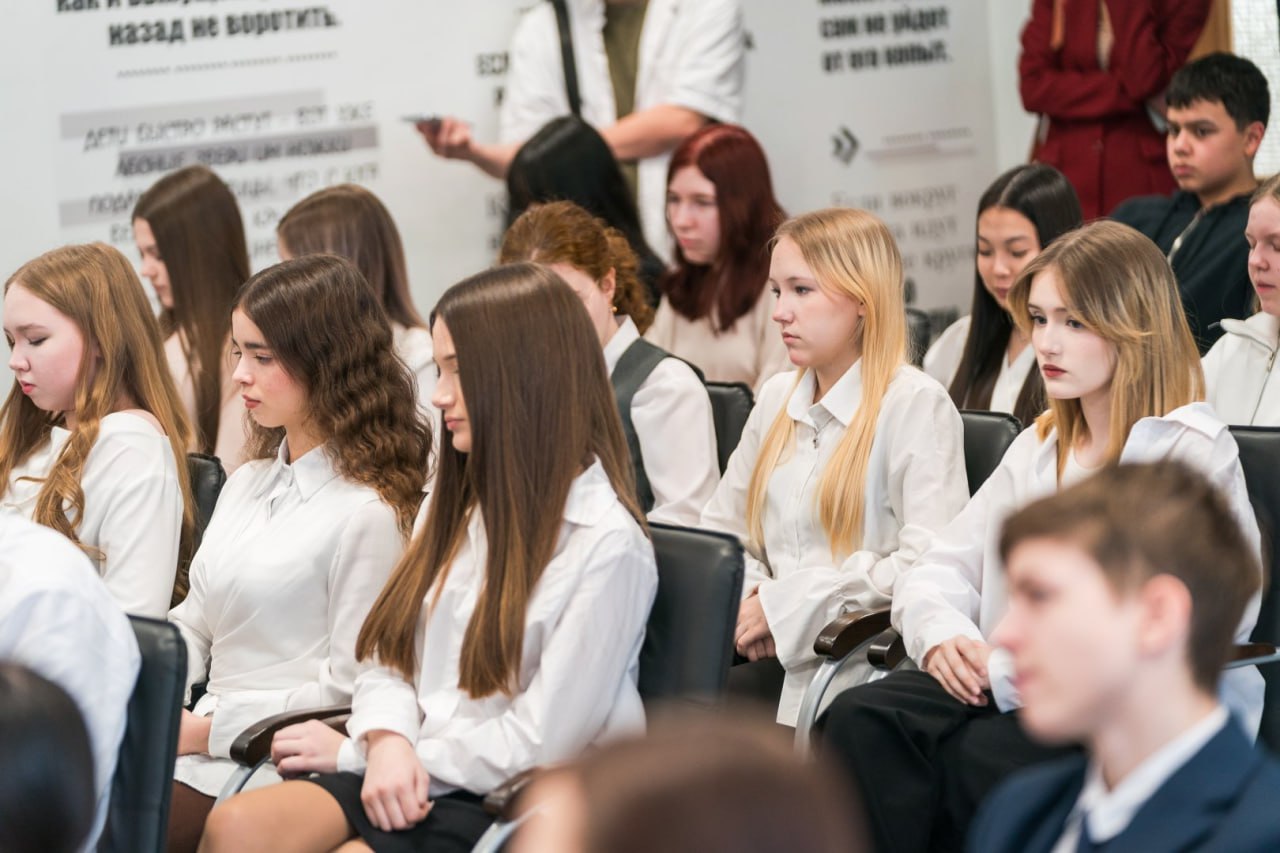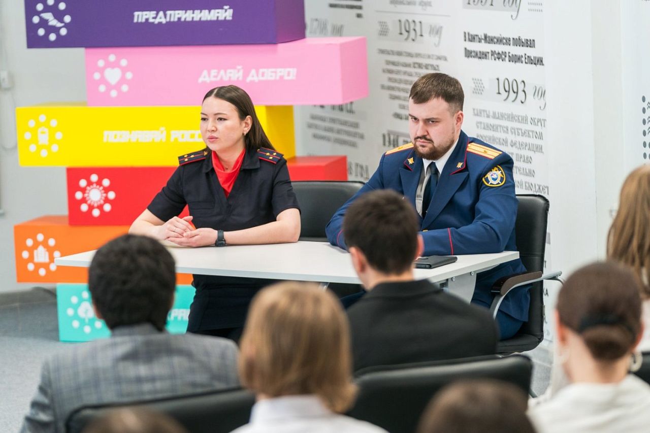 Старший лейтенант полиции Карина Горшкова, временно исполняющая обязанности начальника отдела по делам несовершеннолетних, и заместитель руководителя первого отдела по расследованию особо важных дел СУ СКР по Югре Дмитрий Сергиенко особое внимание уделили безопасности подростков в соцсетях. Они объяснили школьникам, как можно случайно попасть в преступные схемы.