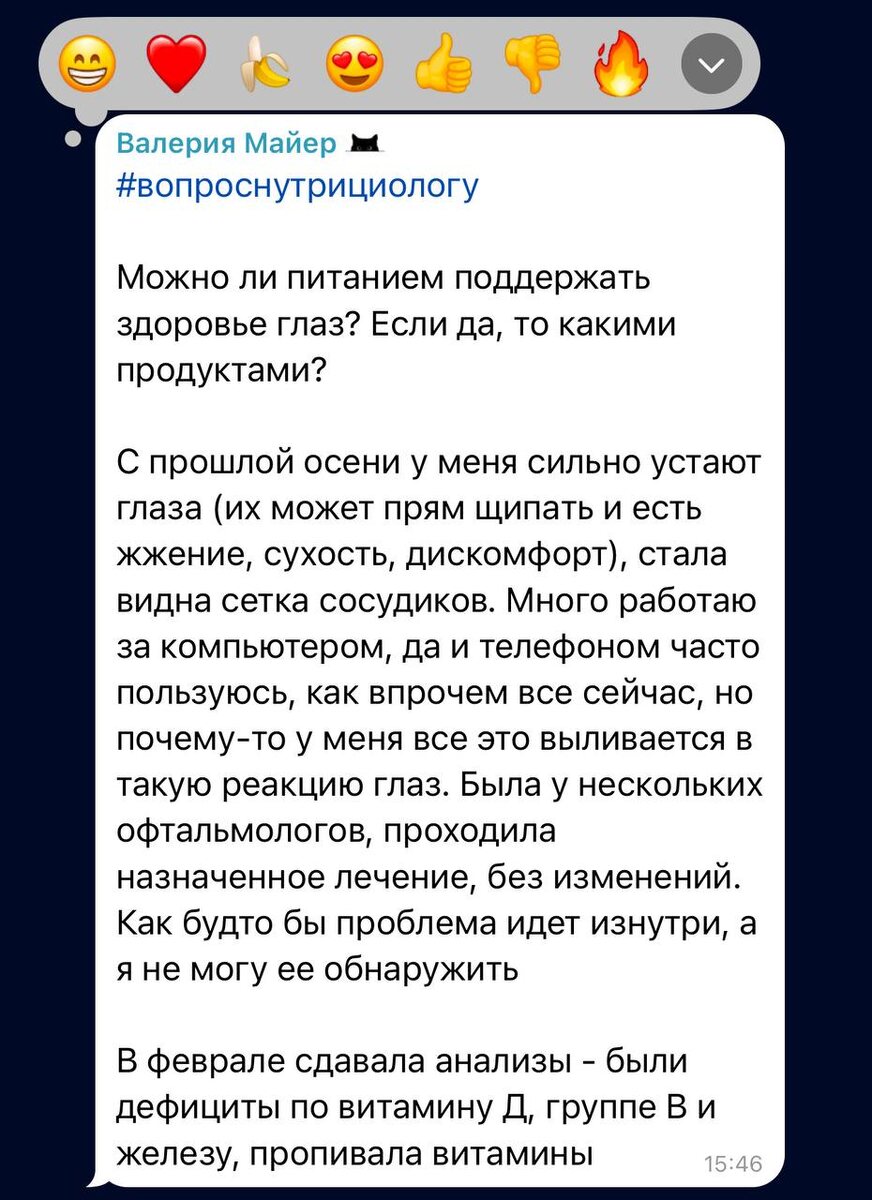 - Омега-3 жирные кислоты Мои глаза стали намного менее уставшими, когда я начала есть больше жирной рыбы. Она не только уменьшает сухость, но и противодействует воспалениям. Попробуйте добавить скумбрию в свой обед — вкусно и здорово!