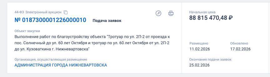 89 миллионов готовы потратить на тротуар на 2П-2 от поселка Солнечный до улицы 60 лет октября и от нее до Кузоваткина.
