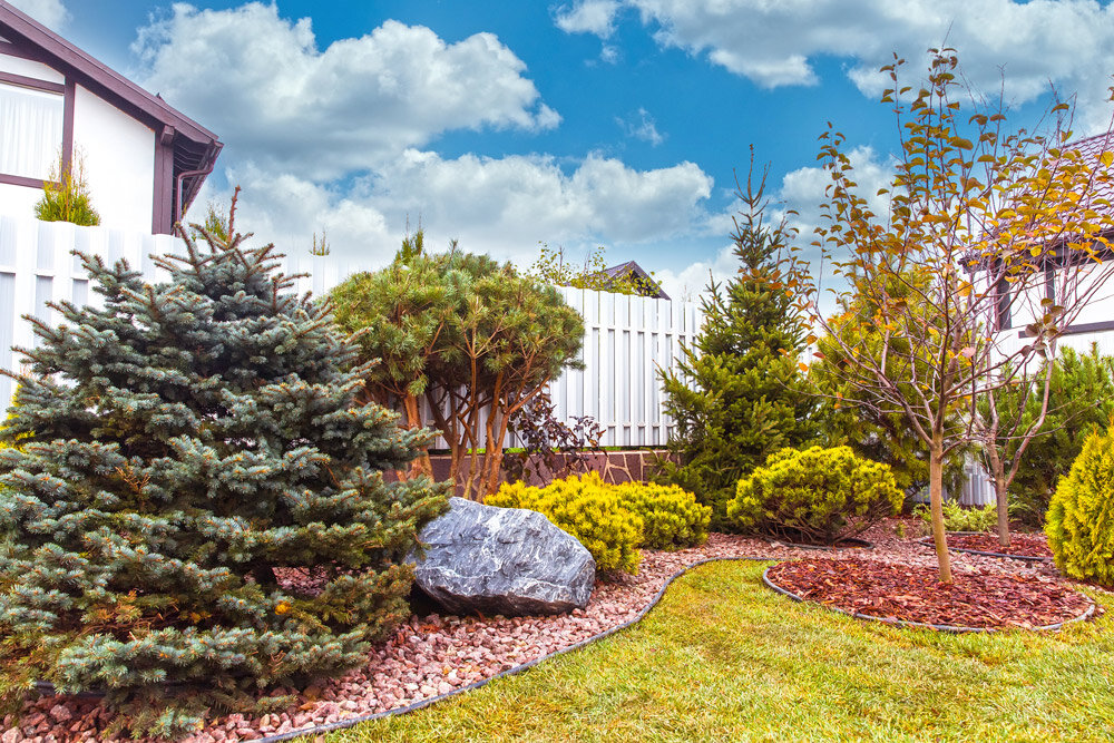 - Команда "Арт Стори" разработала планировку участка и высадила растения, среди которых преобладают крупномерные хвойные.