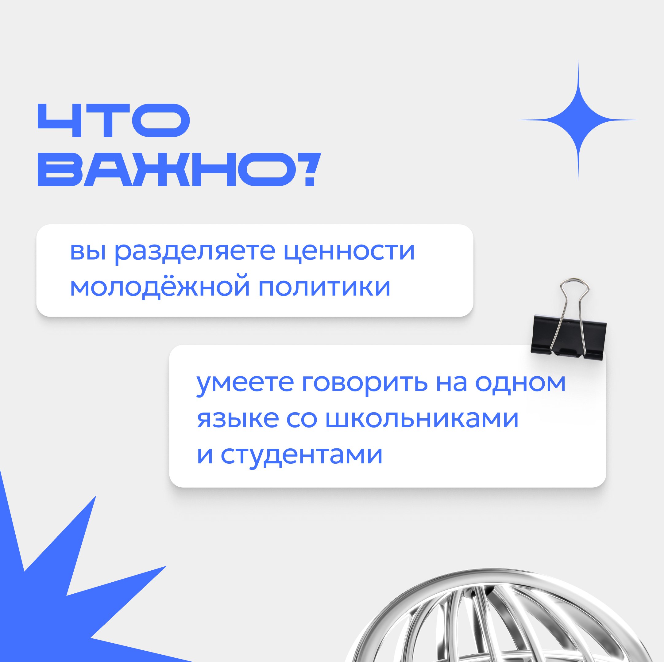 Общие требования к отбору: возраст от 18 до 45, активность и опыт публичных выступлений. Подробности – в карточках.