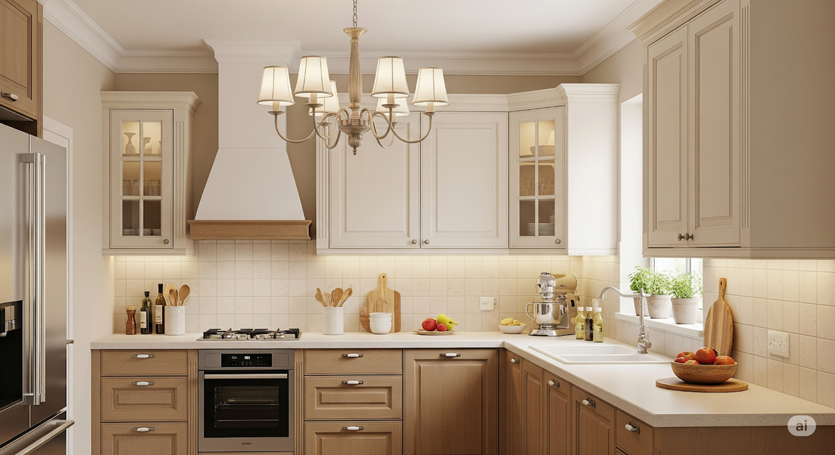 Кухня должна объединять функциональность и комфорт. Центральное освещение является основой: потолочные люстры или подвесные светильники помогут избежать резких теней. Для работы под шкафами установите подсветку — это особенно актуально, если вы любите готовить вечером.