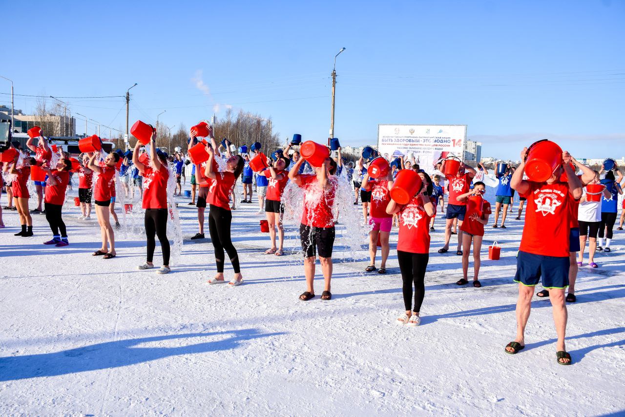 Второй раз в Нижневартовске прошла международная акция "Быть здоровым – это модно!". Сегодня на берегу Комсомольского озера патриоты в футболках цвета российского триколора продемонстрировали свою силу и дух, вылив на себя ведро воды.