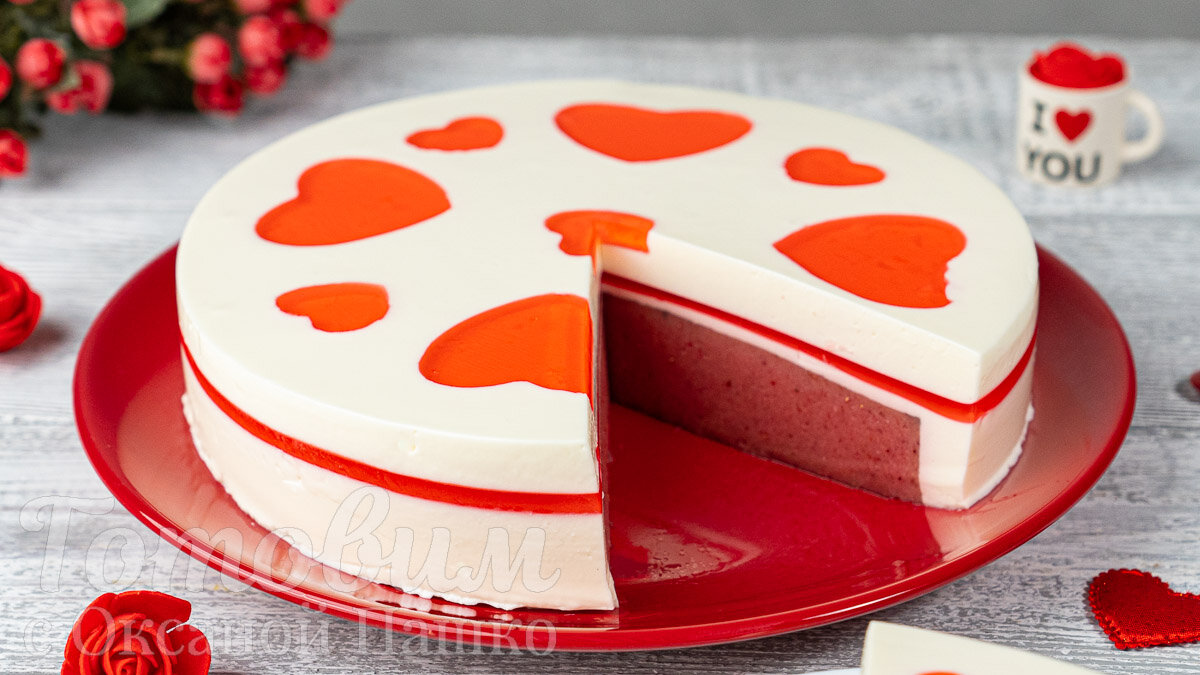 Абсолютно не обязательно ограничиваться лишь Днем всех влюбленных — этот желейный шедевр подойдет и для 8 Марта, и на день рождения. А готовить его просто и увлекательно! Рекомендуется делать торт накануне, чтобы он успел полностью застыть.