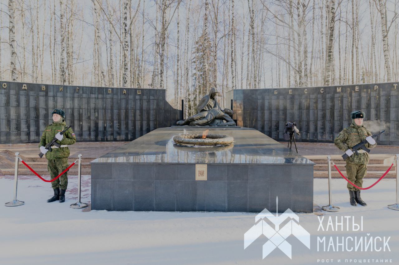 Участники церемонии возложили цветы к Вечному огню Мемориала Славы и монументу «Вечная память воинам Югры».