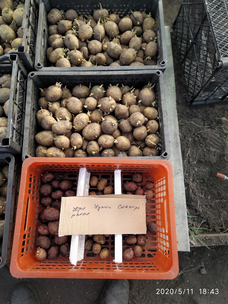 Уборка урожая картофеля завершена, и теперь можно подвести итоги. В этом сезоне для эксперимента были выбраны мини-клубни трех сортов: 'Удача', 'Утро раннее' и 'Снегирь'. Посылка от интернет-магазина «Сады России» пришла вовремя, а клубни уже имели маленькие ростки, что внушало оптимизм.