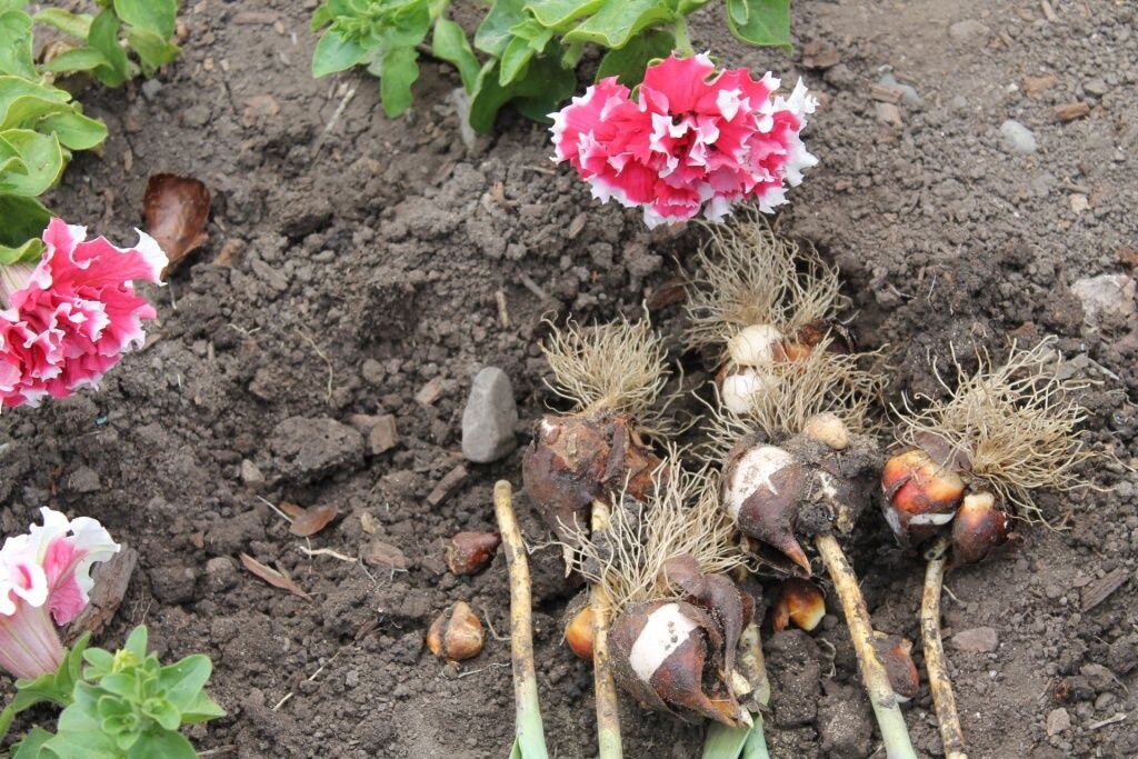 Сроки выкапывания варьируются по регионам: на юге это начало июня, в средней полосе — конец июня и начало июля. В дождливые годы луковицы могут дольше оставаться зелеными, из-за чего садоводам следует быть осторожными с грибковыми заболеваниями.