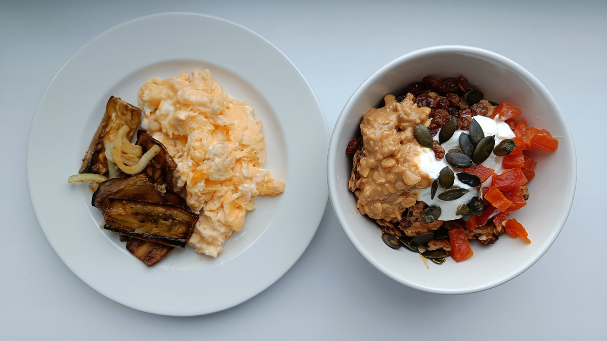 Новая версия гранолы — яблочно-кокосовая с черносливом — была создана в момент, когда исследовалась возможность сухих завтраков без бананов. Сочетание натурального питьевого йогурта без сахара с кусочками хурмы, курагой и тыквенными семечками стало настоящим открытием!