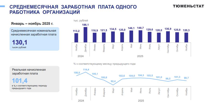 Такие данные по ХМАО представил Тюменьстат. Судя по инфографике, мы и побольше зарабатывали - до 188 тысяч в месяц в декабре 2024.