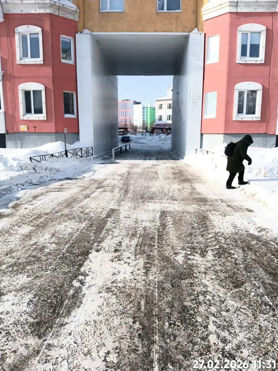 Очистку от снега дворов многоквартирных домов выполняют управляющие организации. Их контактные данные размещены на информационных стендах в подъездах.