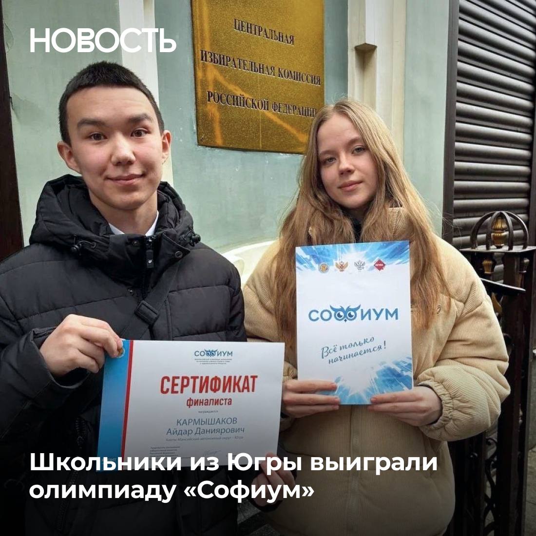 Ученики Излучинской школы №2 Айдар Кармышаков и Анастасия Рябова показали безупречный результат на Всероссийской олимпиаде «Софиум», набрав максимальные 15 баллов за знание избирательного права.