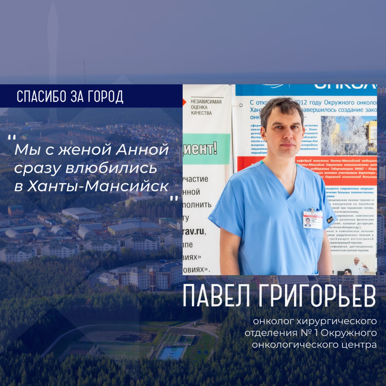 Героем рубрики «Спасибо за город» стал Павел Григорьев, онколог хирургического отделения № 1 Окружного онкологического центра