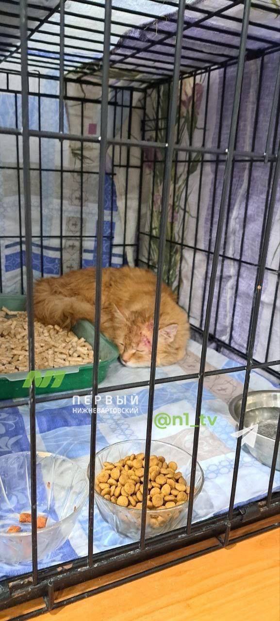 Кошечка, которую выбросили в мусоропровод, сейчас в надежных руках. Ее покормили и напоили.