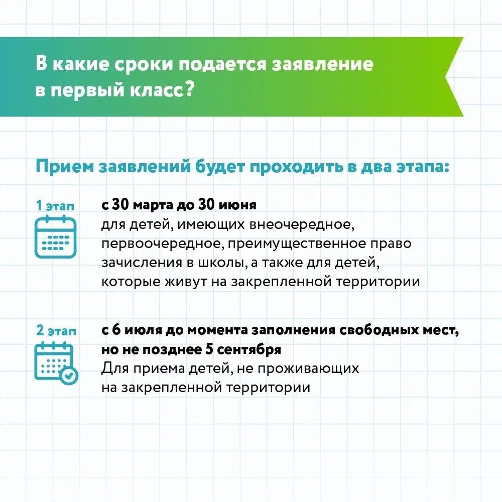 Первый этап – с 30 марта до 30 июня. Осуществляется прием детей, имеющих внеочередное, первоочередное, преимущественное право зачисления в школы, а также для детей, которые живут на закрепленной территории.