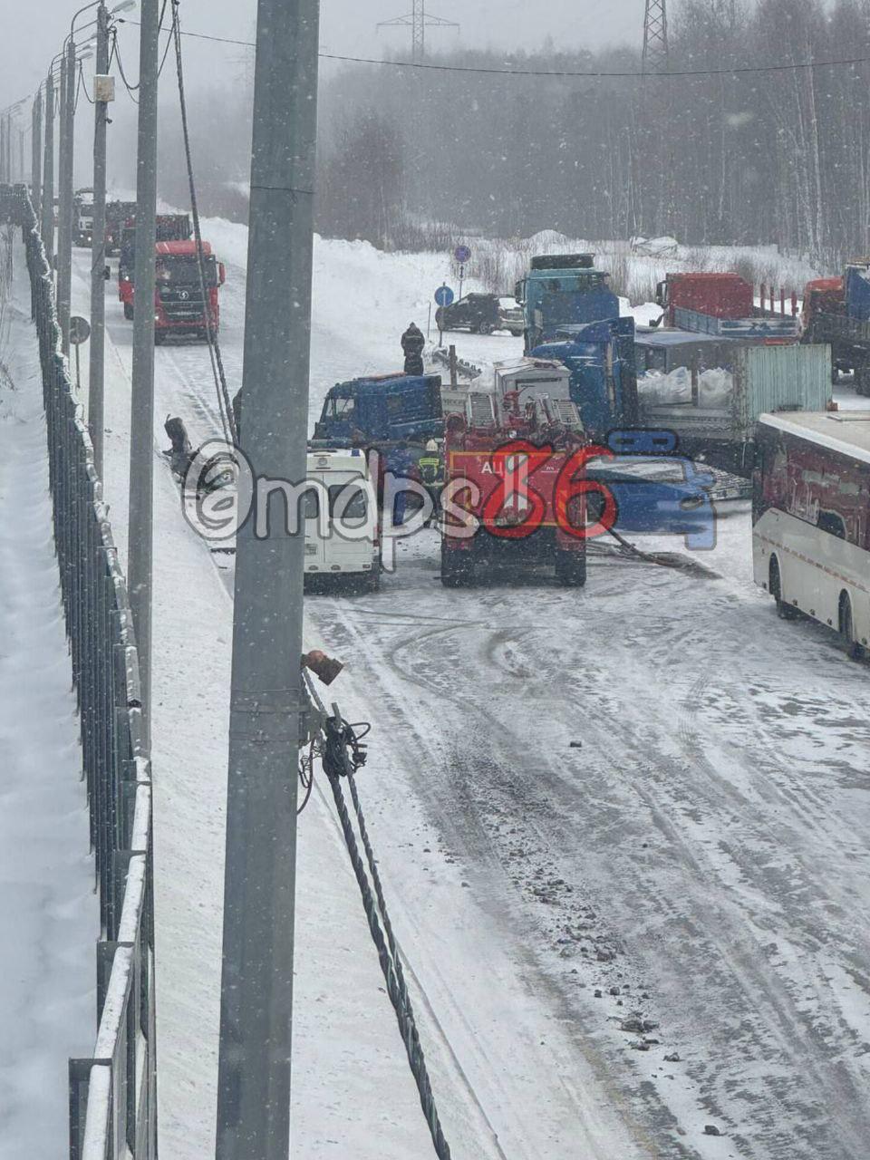На 774 км автодороги "Тюмень -Ханты-Мансийск" произошло массовое ДТП. Столкнулись "Камаз", "Маз", "Кia" и "Урал".