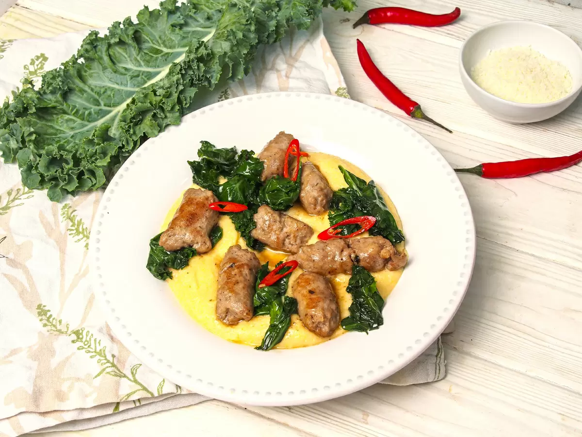 Итальянская полента: быстрое и вкусное блюдо с колбасками и кейлом