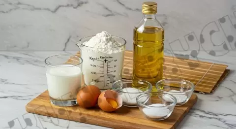 Ключевым элементом в этом рецепте является кефир. Лучше всего использовать кефир с жирностью 2,5%, он делает тесто мягким и добавляет необходимую кислотность для реакции с разрыхлителем.