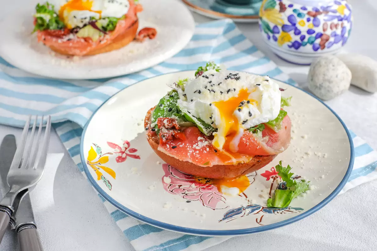 Бриошь – это не просто хлеб, это маленькое произведение искусства, известное своим мягким и воздушным вкусом. Франция гордится этой сладкой выпечкой, которая по праву считается королевой дрожжевого теста. Время от времени ее подают не только на праздники, но и в качестве особенного завтрака. В этом рецепте бриошь соединяется с вялеными томатами и тонко нарезанной слабосолёной рыбой, создавая гармоничное сочетание вкусов, а завершает композицию нежное яйцо пашот.