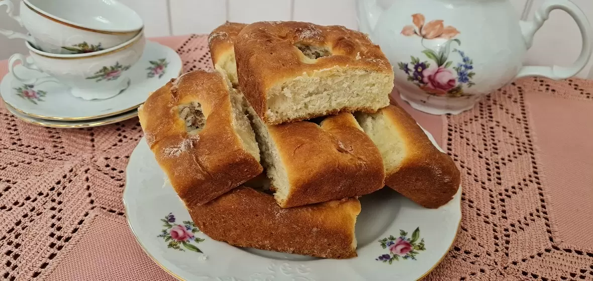 - Для теста: 0,5 литра молока, 70 граммов свежих дрожжей, 200 грамм сахара, 250 граммов маргарина, 1 килограмм муки, 4 яйца, 1 чайная ложка соли, 3 столовые ложки растительного масла.