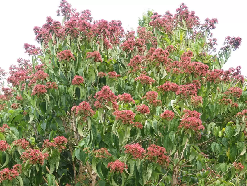 Это растение может достигать высоты от 3 до 5 метров, образуя раскидистую крону. Кора гептакодиума вызывающе привлекает внимание даже в зимний период, обнажая серо-коричневые или желтовато-серые оттенки, которые, как и бордово-красные прицветники, предпочитают выделяться на фоне снежной зимы.
