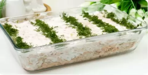 3. Остуженную рыбку разбирают на волокна, приправляют по вкусу и выкладывают в салатник слоями: рыба, маринованный лук, майонез, и так до тех пор, пока ингредиенты не закончатся. Последний слой должен быть рыбным, смазанным майонезом.