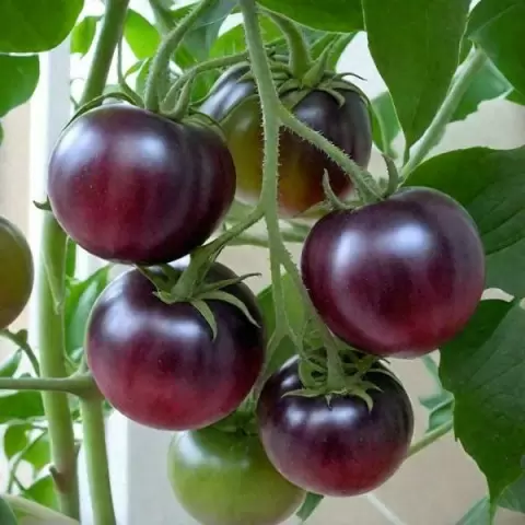 Томат «Голубая лагуна» является представителем антоциановых сортов, которые отличаются ярко-фиолетовым цветом благодаря высокому содержанию растительных пигментов антоцианов. Эти вещества придают не только экзотичный внешний вид, но и антиоксидантные свойства, увеличивая питательную ценность плодов.