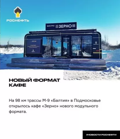 На трассе М-9 «Балтия» в Подмосковье открылось обновленное кафе «Зерно», выполненное в современном модульном формате. Это заведение предлагает автомобилистам и путешественникам значительно больше комфорта и удобства: здесь расширено пространство, а также улучшены места для посадки.