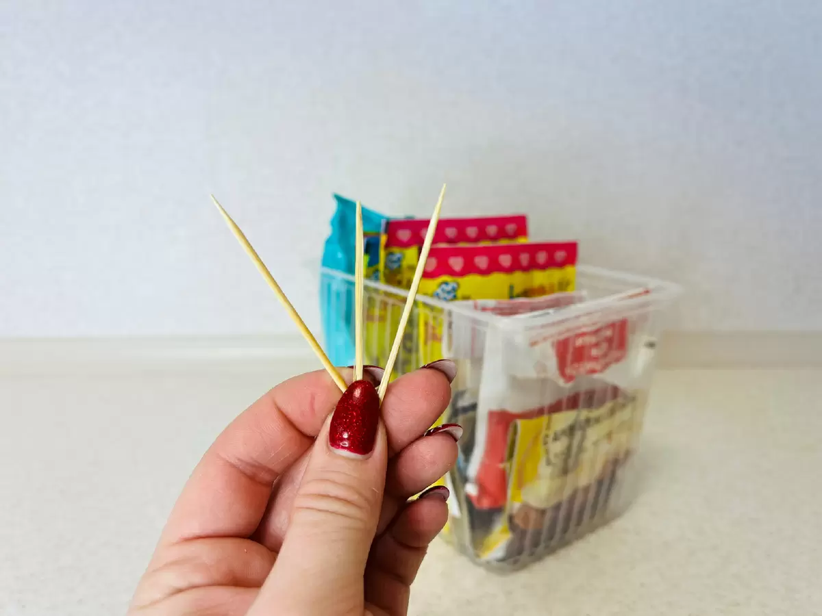 Первый метод заключается в использовании обычных зубочисток. Они могут стать отличным помощником для закрытия бумажных упаковок. Для этого нужно подворачивать открытый край упаковки несколько раз и зафиксировать его зубочисткой. Это обеспечит надежное закрытие, хотя потребуется немного аккуратности при последующем открытии. Вернуться к прежним отверстиям будет не так просто, и важно следить за тем, чтобы не повредить упаковку.