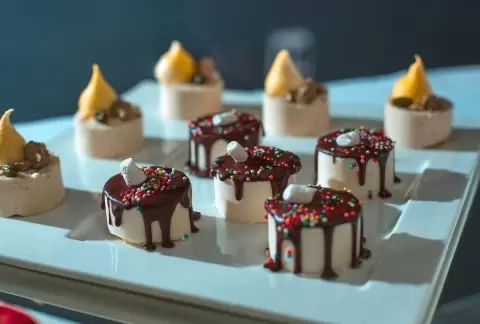 - Десерты в форме — Необычные сладости в «шотах», такие как тирамису или чизкейки, обязательно произведут впечатление.