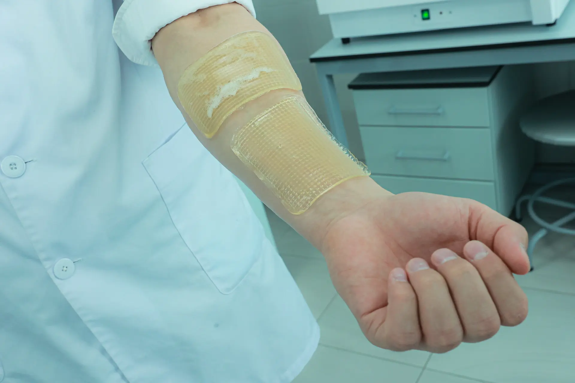 В основе повязки — желатин и хитозан — вещество из панциря ракообразных. Состав подобран так, чтобы имитировать структуру человеческой кожи. Особенность разработки в том, что она не приклеивается к ране, не вызывает боли при перевязках, а постепенно тает, способствуя заживлению.