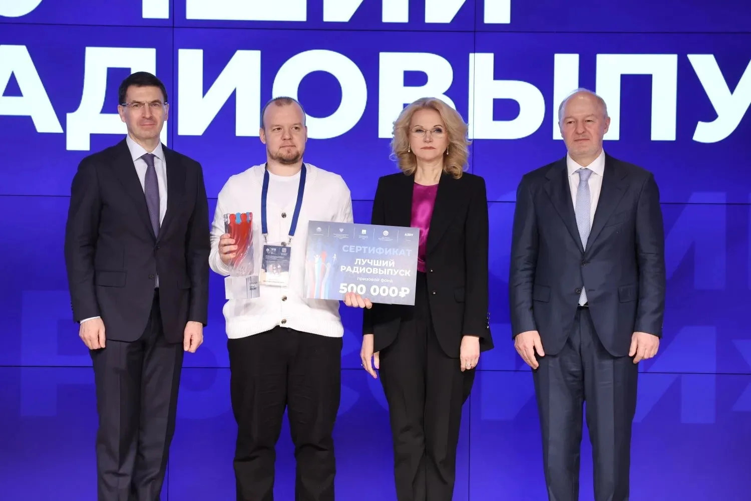 Рассказать о поддержке многодетных семей так, чтобы это оценили на федеральном уровне, получилось у журналистов Югорского медиацентра. Их цикл аудиороликов «В большой семье» одержал победу в номинации «Лучший радиовыпуск». Награду из рук заместителя председателя Правительства РФ Татьяны Голиковой получил звукорежиссер проекта Максим Шакиров.