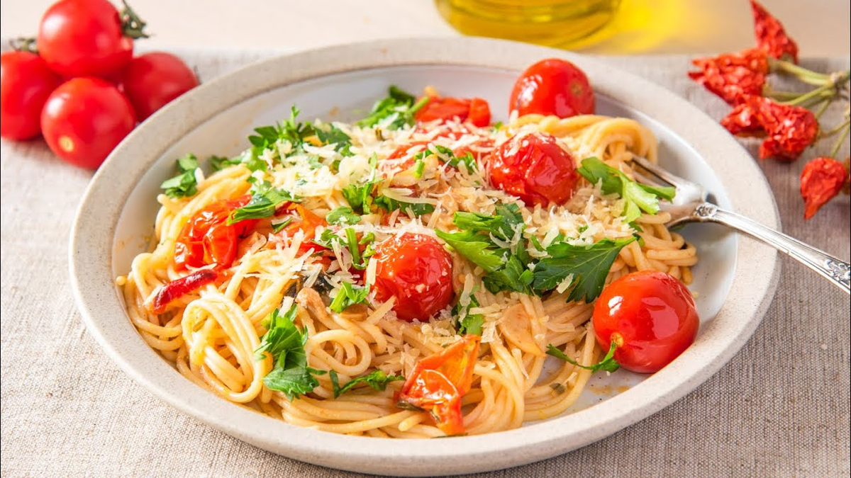 1. Паста с черри, базиликом и пармезаном