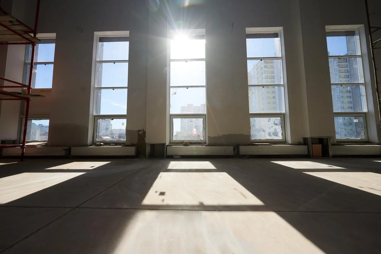 Губернатору представили обновленное фасадное решение с современной подсветкой и будущие интерьеры. Сейчас штукатурные работы практически завершены, инженерные системы выполнены на 80%. Закончить строительство планируют в конце июня.